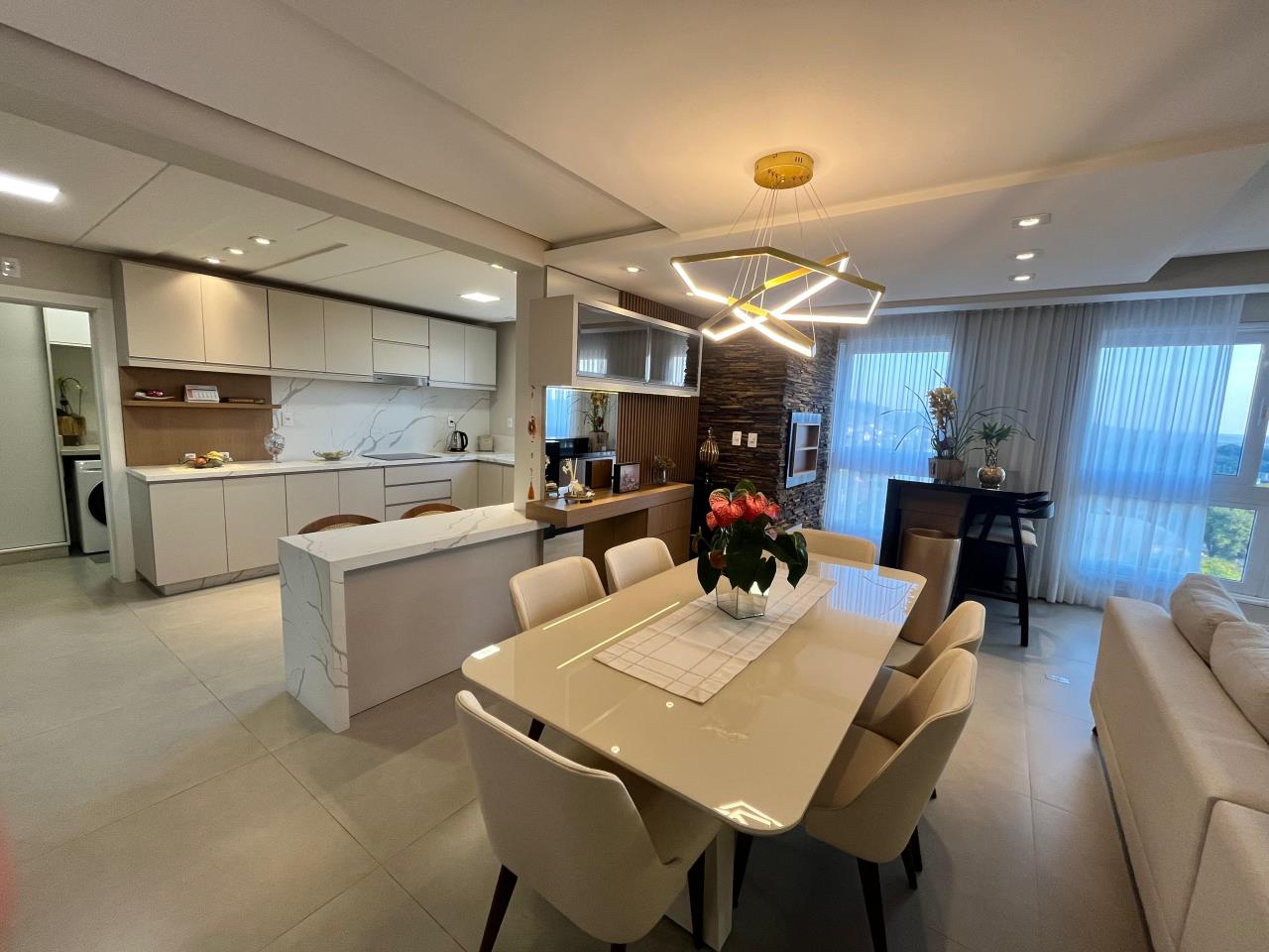 Área de viver integrada (cozinha, sala de estar e sala de jantar), perfeita para receber e contemplar a bela paisagem da cidade;