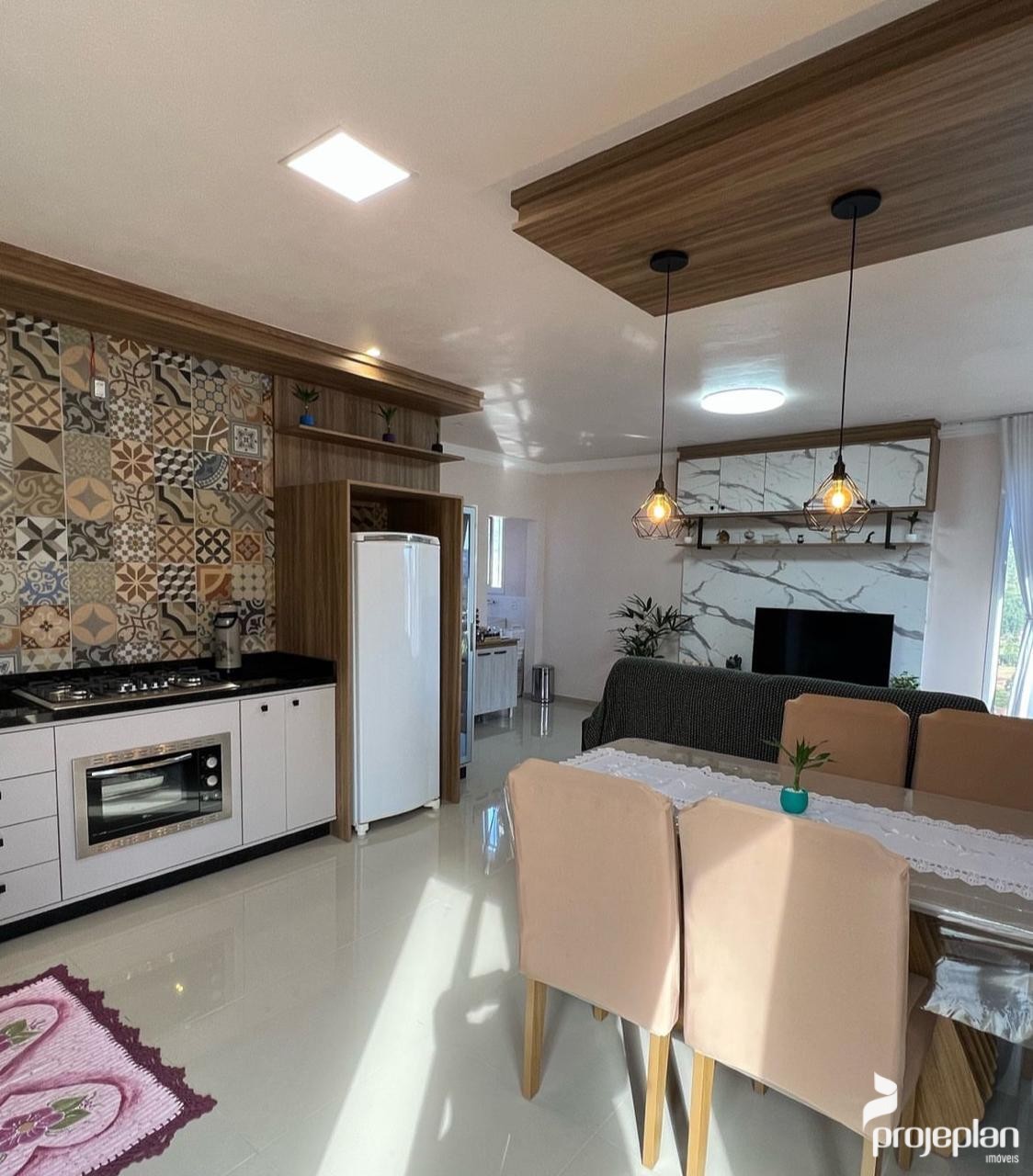 Trata-se de uma casa com 56 m², com um dormitório, sala e cozinha integradas, banheiro social e área de serviço.