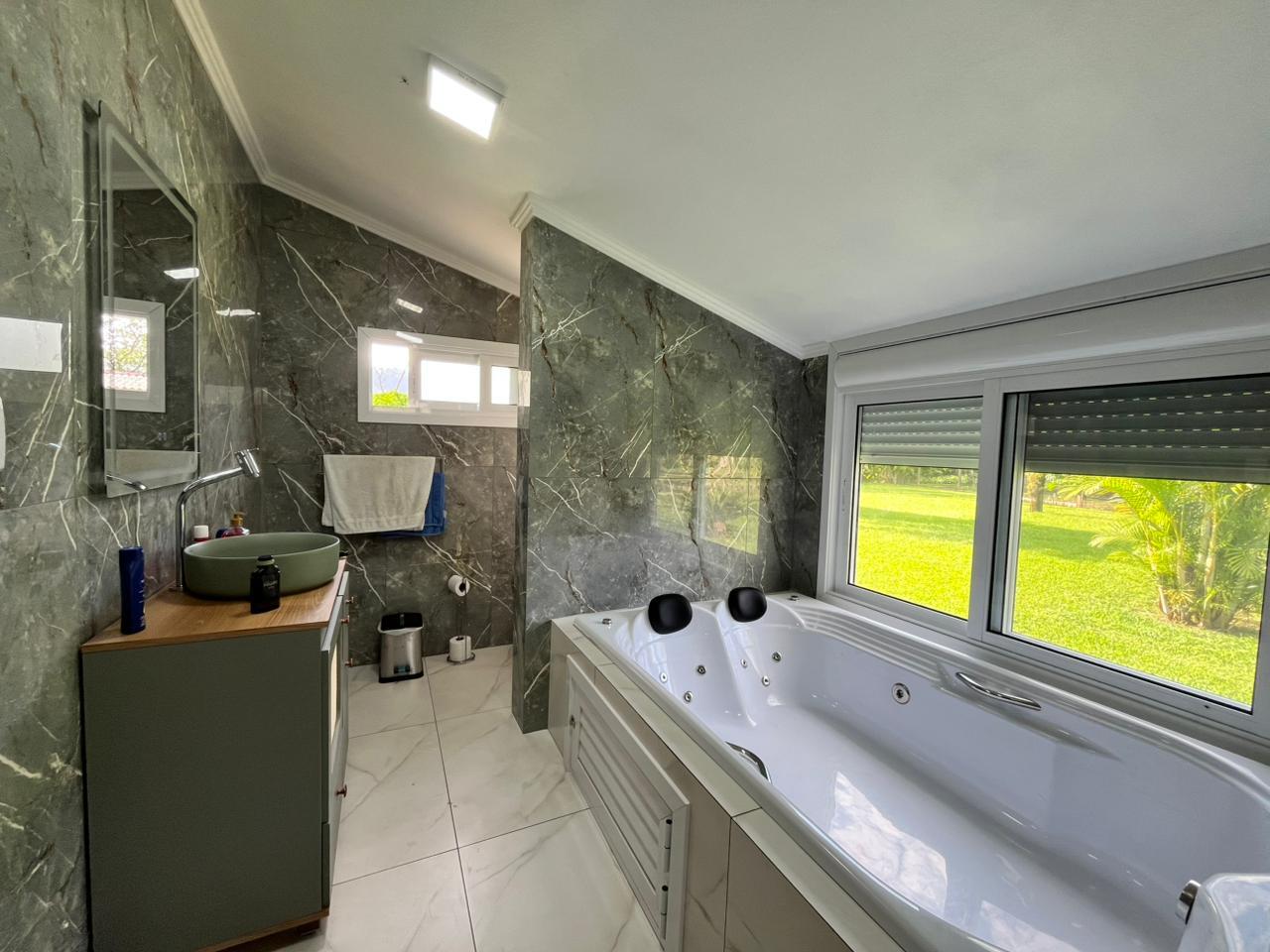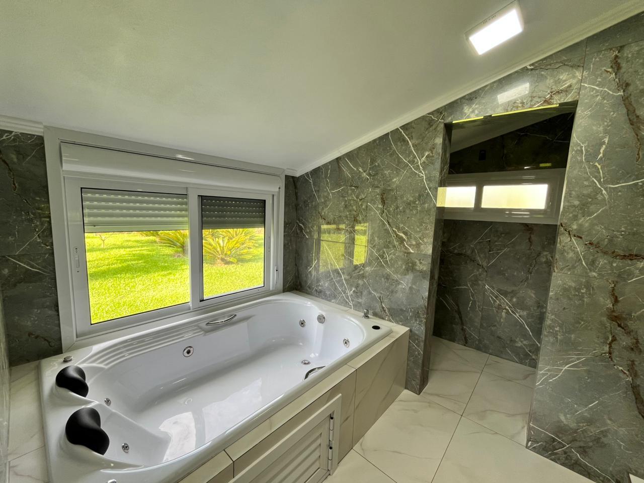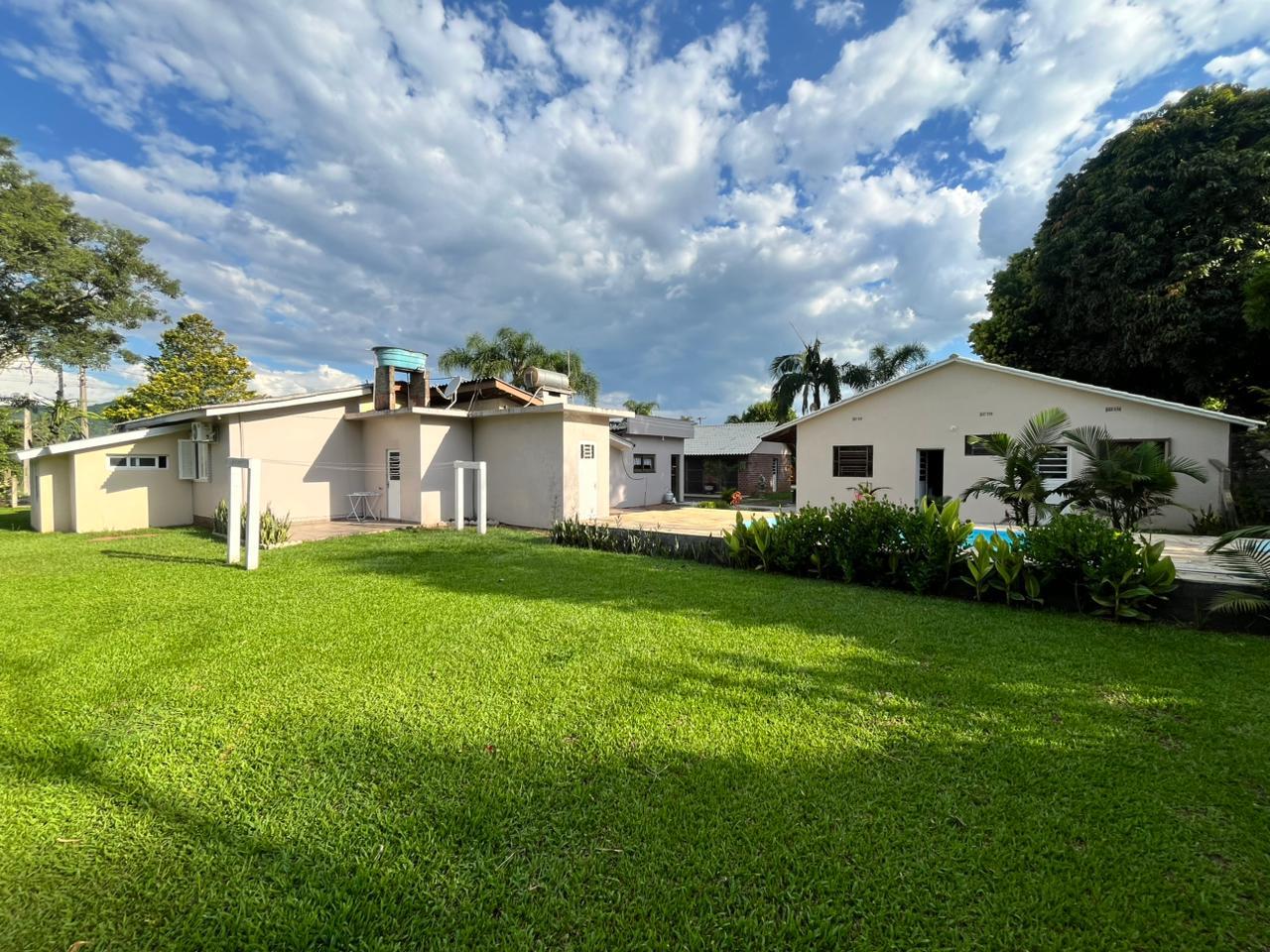 O imóvel conta com amplo pátio gramado, piscina e uma casa charmosa com 4 dormitórios, sendo uma suíte com banheira de hidromassagem e espera para sauna, além de 3 banheiros, cozinha e ampla área social.