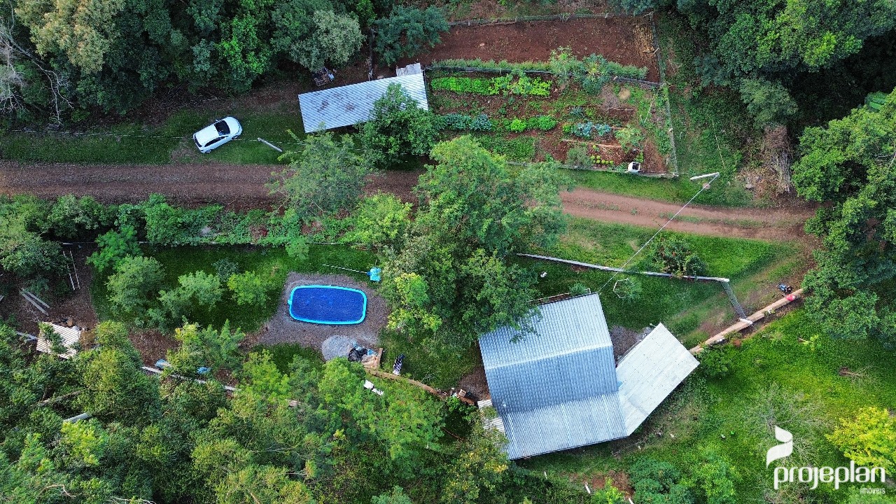 Possui um espaço todo cercado onde você terá uma residência com casa de alvenaria, com 48 m² + garagem + varanda, área de lazer com piscina, espaço para construção de quiosque e galpão para armazenamento de lenha.