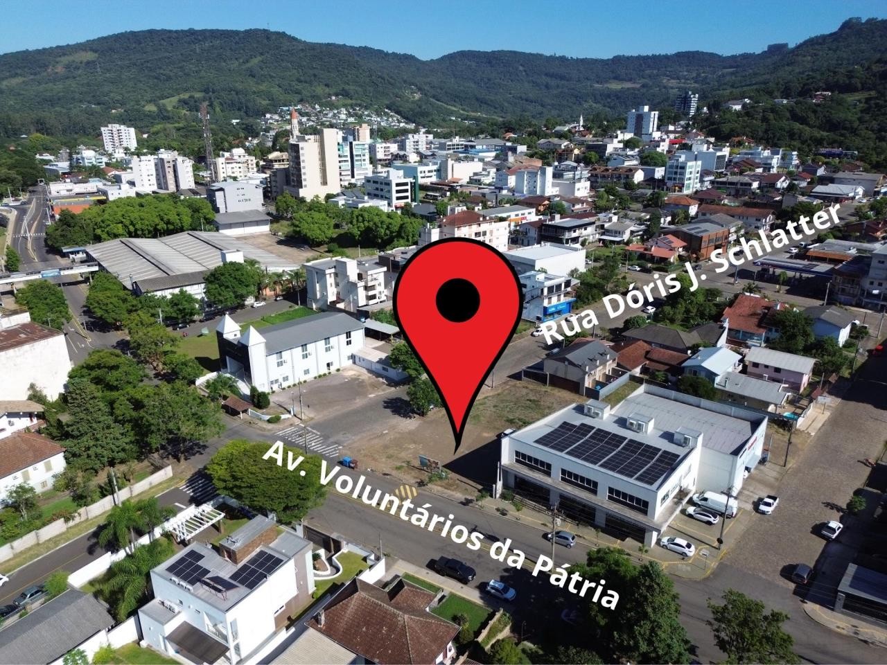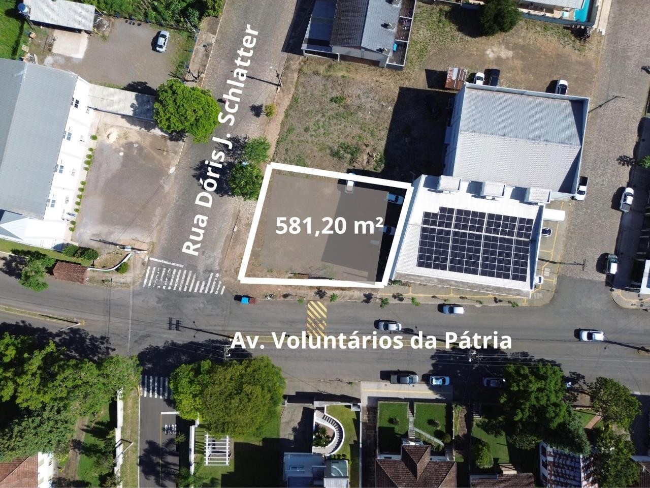 Terreno de esquina com 581,20 m², situado em ponto de alto fluxo, na esquina da Av. Voluntários da Pátria com a Rua Doris José Schlatter, ao lado da Academia DallFitness.