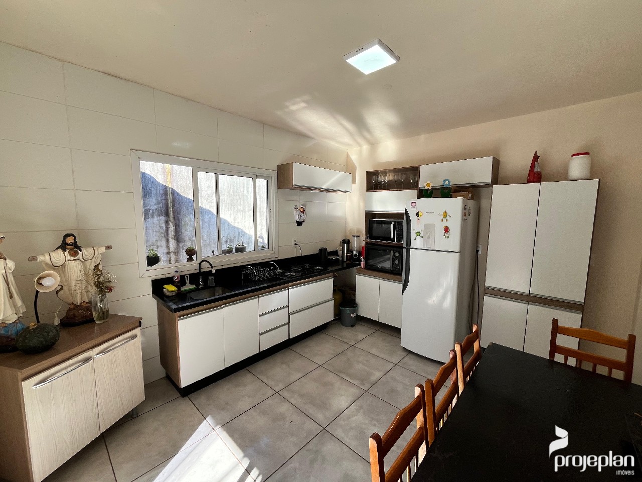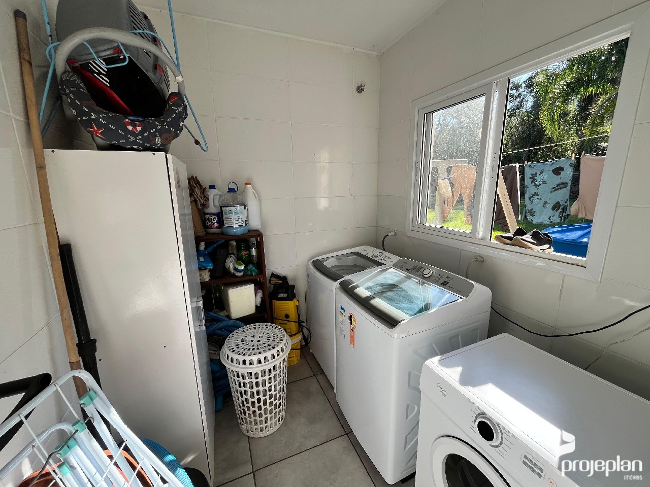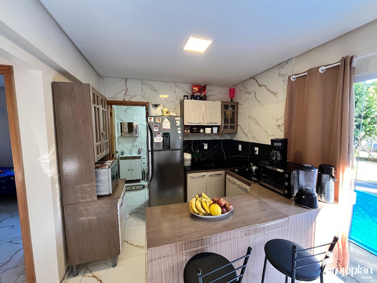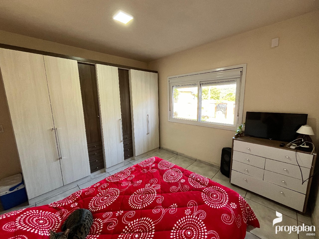 Possui uma casa com 116,80 m² dividida em sala de estar, cozinha e sala de jantar integradas, 3 dormitórios, banheiro social, garagem fechada, área de serviço e churrasqueira. Além disso, tem área de lazer com piscina e um quiosque com 49,88 m² adaptado para uma segunda moradia, que pode ser transformado em salão de festas, dividido em 2 dormitórios, sala de estar/jantar e cozinha integradas e banheiro social.
