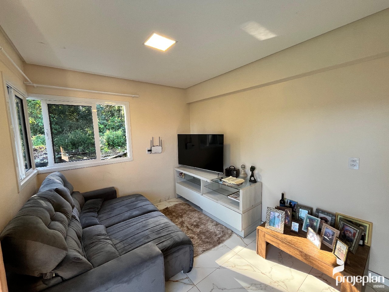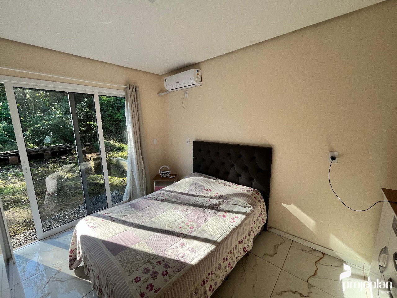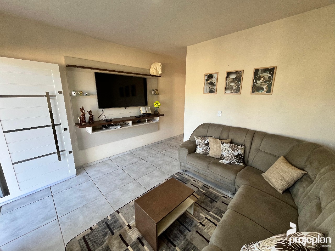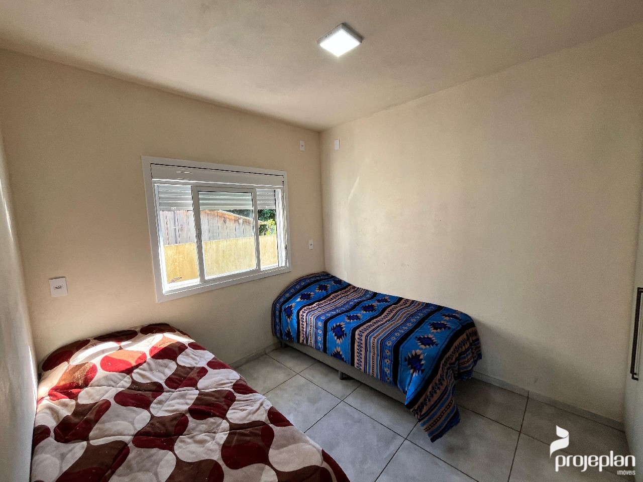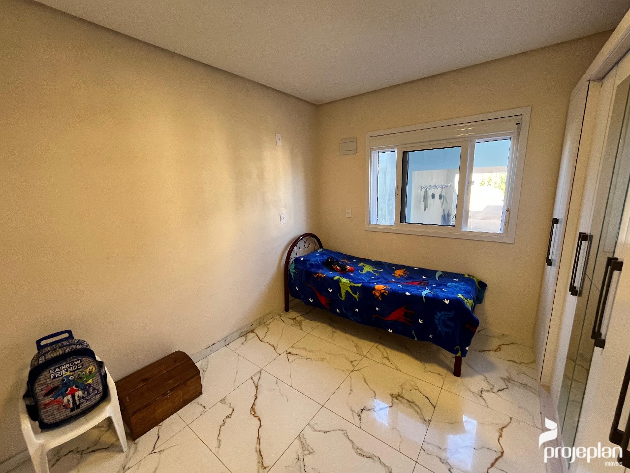 Possui uma casa com 116,80 m² dividida em sala de estar, cozinha e sala de jantar integradas, 3 dormitórios, banheiro social, garagem fechada, área de serviço e churrasqueira. Além disso, tem área de lazer com piscina e um quiosque com 49,88 m² adaptado para uma segunda moradia, que pode ser transformado em salão de festas, dividido em 2 dormitórios, sala de estar/jantar e cozinha integradas e banheiro social.