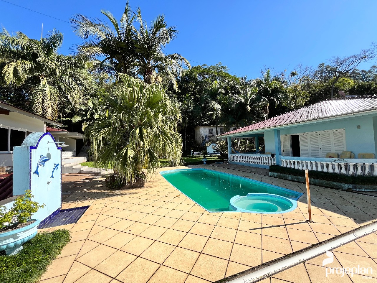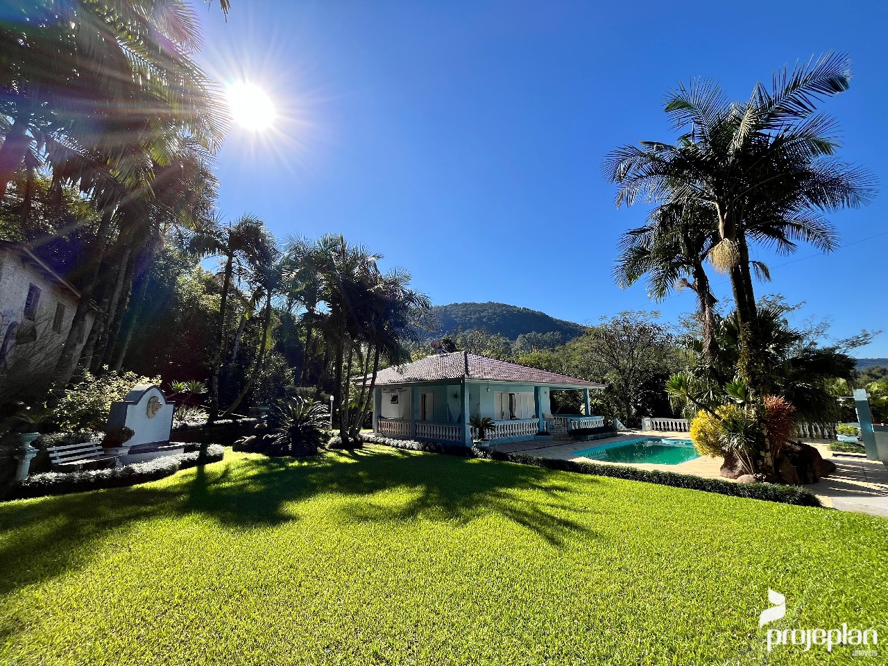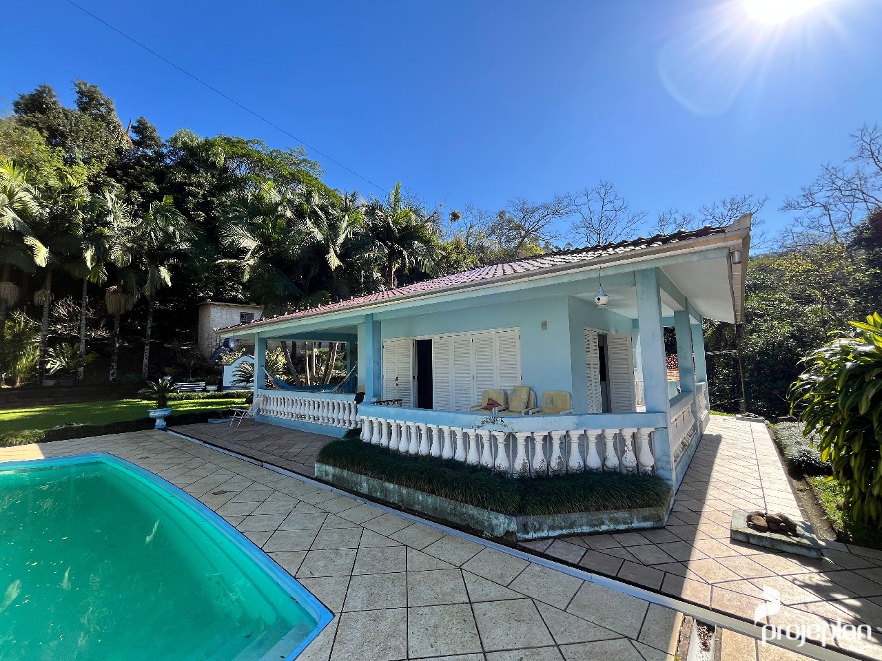 Trata-se de uma propriedade com quase 9 mil m² de área, com uma casa ampla com 3 dormitórios sendo uma suíte, área de lazer com quiosque, piscina e lindo paisagismo e garagem externa, totalizando 500 m² de área construída, e também tem uma bela área de vegetação.