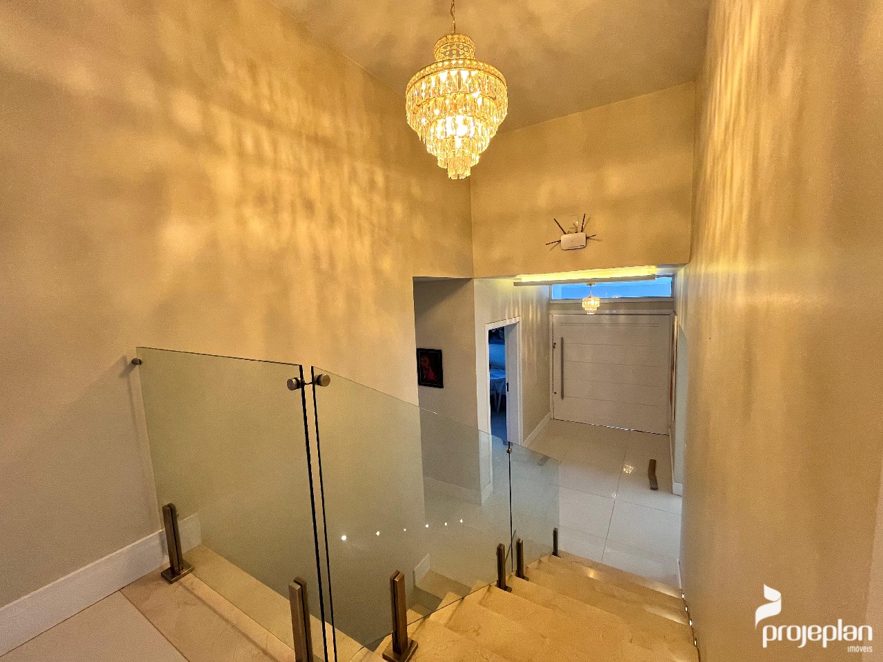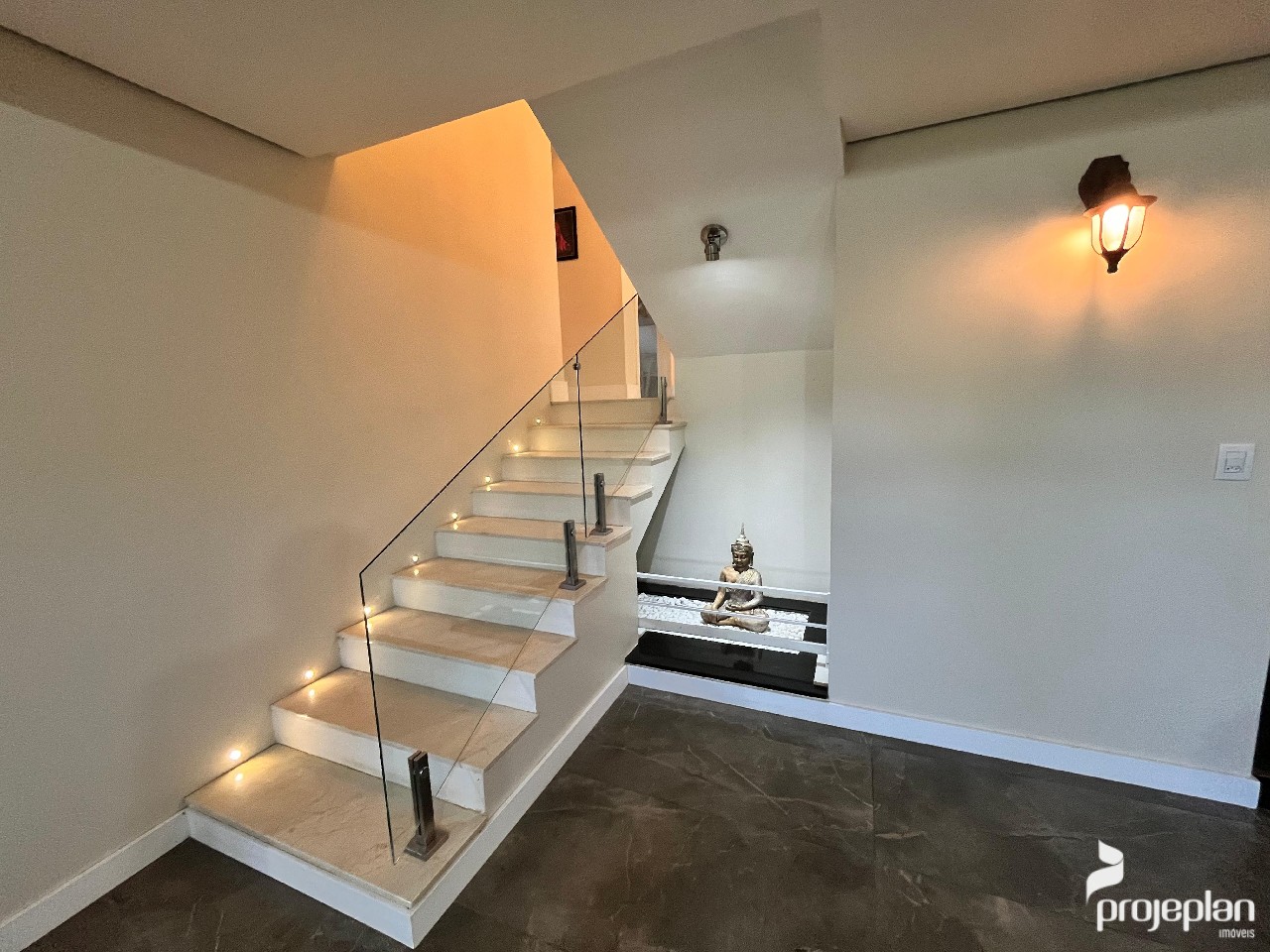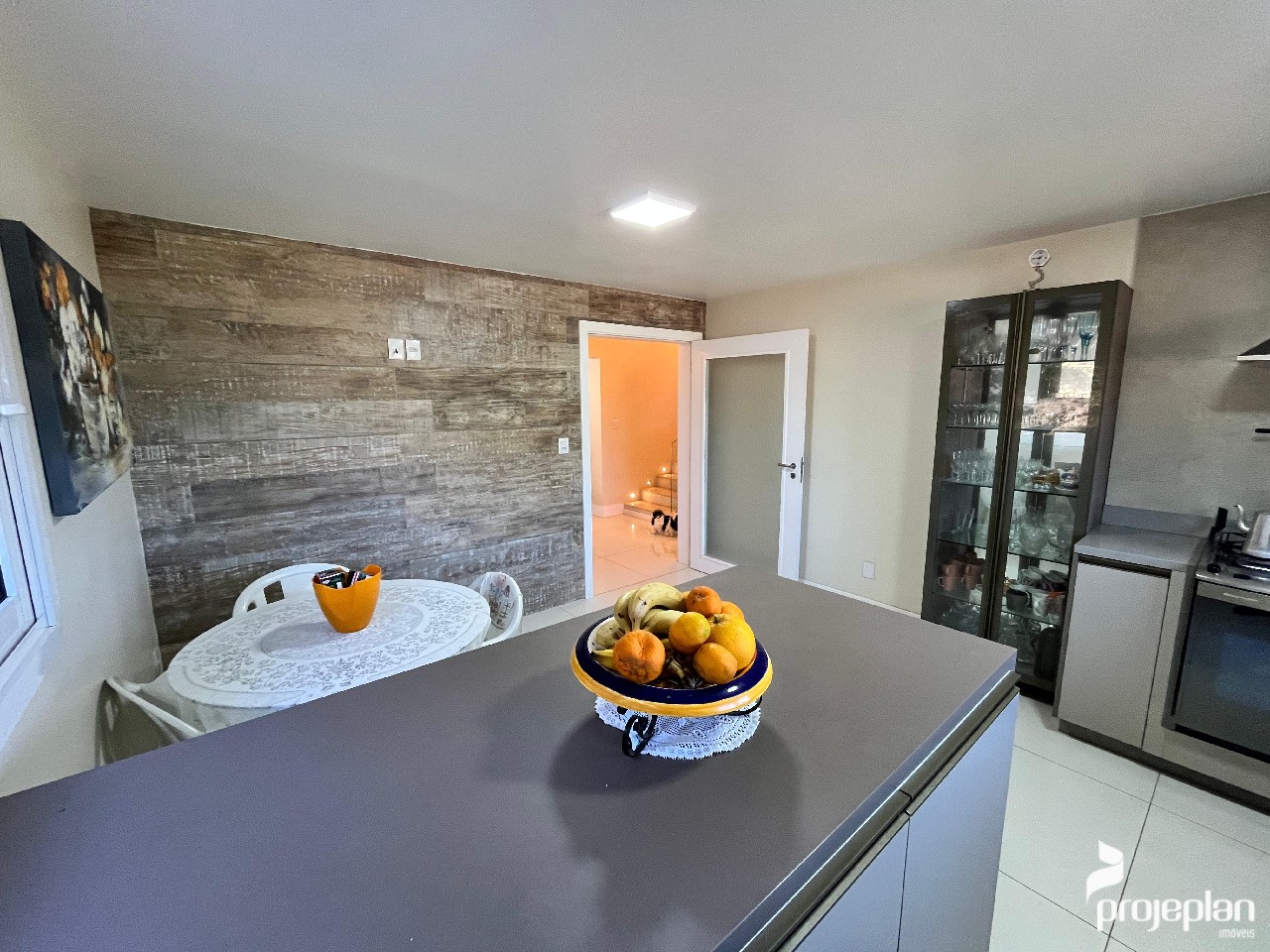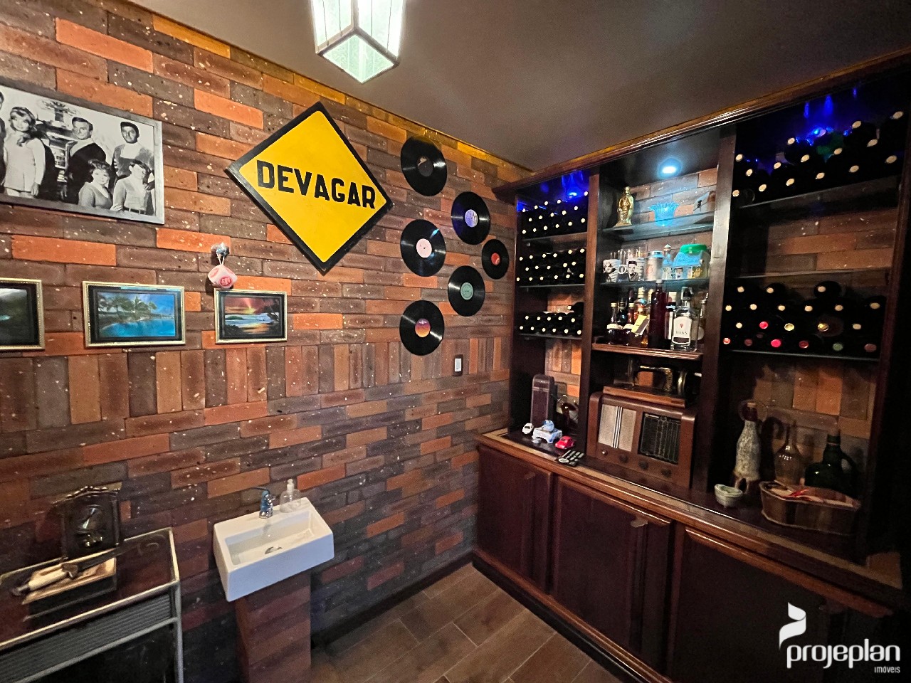 A casa conta com área social integrada com lareira e uma bela vista da piscina, 3 dormitórios sendo uma suíte com banheira de hidromassagem e 2 deles com espaço para closet, banheiro social, lavabo, cozinha ampla e funcional, adega, área de serviço, escritório e garagem interna para 2 carros e que pode ser utilizado como salão de festas. Possui ainda um espaço inacabado com 40 m².